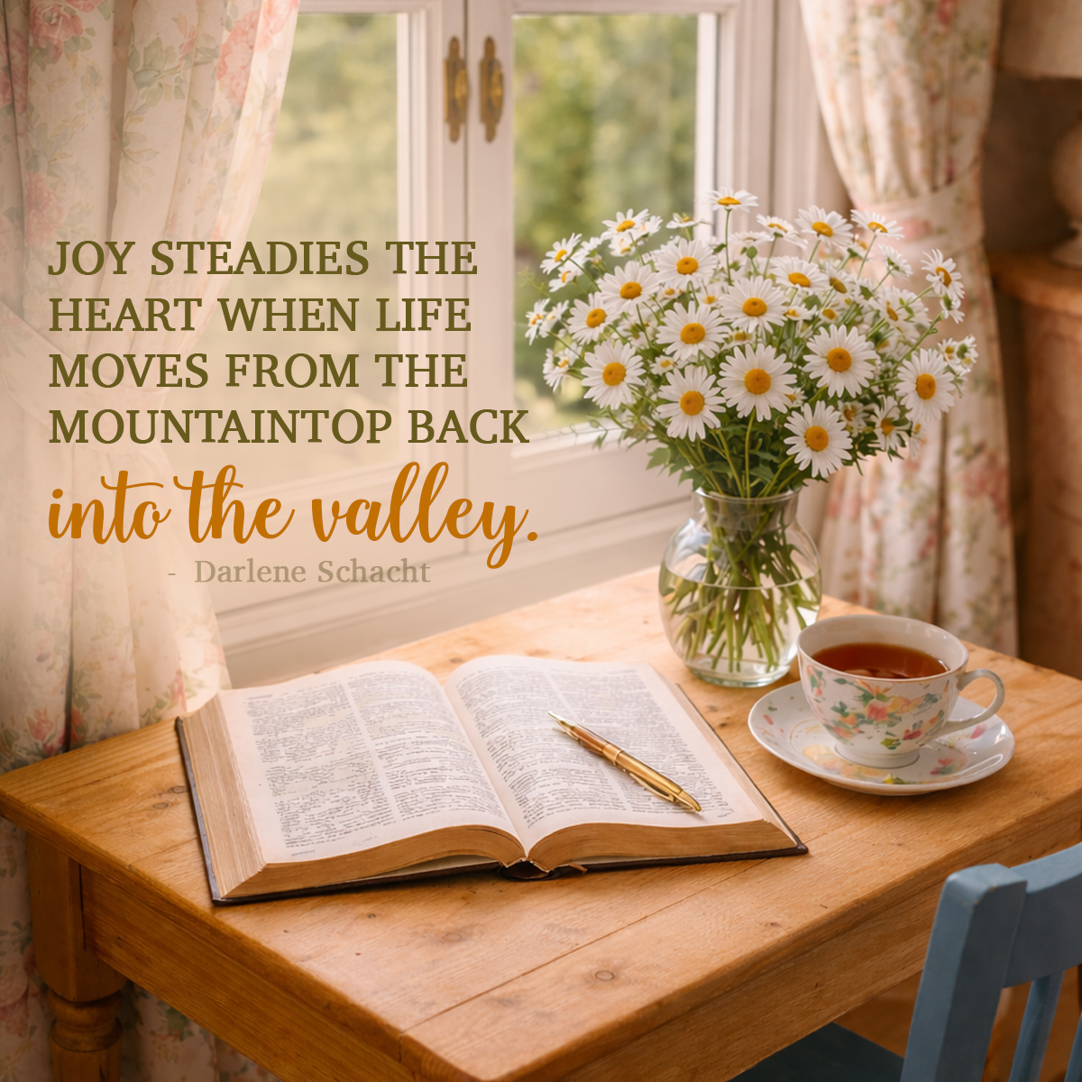 Joy steadies the heart when life moves from the mountaintop back into the valley.